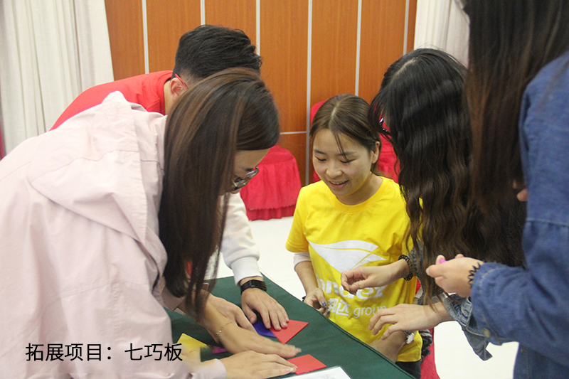 “七巧板”项目考验的是同事们全盘考虑、资源整合与配置的能力。所有队员被分为7个小组。项目中,领导小组和其他6个小组都被分有自己的任务,如何在完成小组任务的同时,还能完成整个拓展团队的任务,这就需要领导组在全盘思考的基础上对场上所有的资源进行有效的整合与分配。同事们通过七巧板项目认识到:小组和整个团队是一荣俱荣的,必须提升个人的大局观念,保持目标一致,合理调配资源,小组任务的完成才能有助于团队目标的达成,才能让自己和团队共同前进。