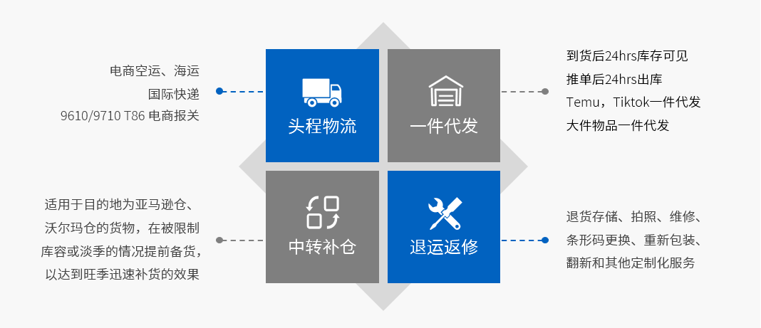 从全球代采(金融服务)、海外仓服务、跨境物流到关务方案咨询、保税备货仓储、分拣派送,平台分销等B2B2C一体化解决方案。
